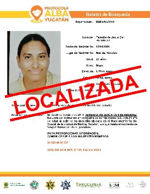 Se solicita su colaboración para localizar a Teresita de Jesús Can Hernández, quien el pasado 26 de octubre salió de su domicilio ubicado en el fraccionamiento Sol Caucel.